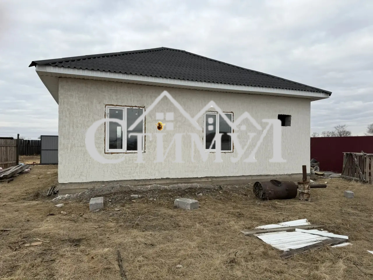 Общая площадь 100 м2, участок 10 сот. 1-этажный дом, газобетонный блок, построен в 2026 г. Под отделку, своя скважина, электричество 380 вольт, туалет в доме, автономное электрическое отопление.