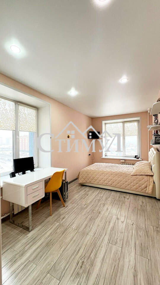 На этаже 4 квартиры. Общая площадь квартиры - 73,3 кв.м. Кухня большая, совмещена с гостиной. Две изолированные спальни. Санузел совмещенный. Также имеется кладовое помещение. Большая застеклëнная лоджия с выходом во двор. Ремонт свежий, качественный.