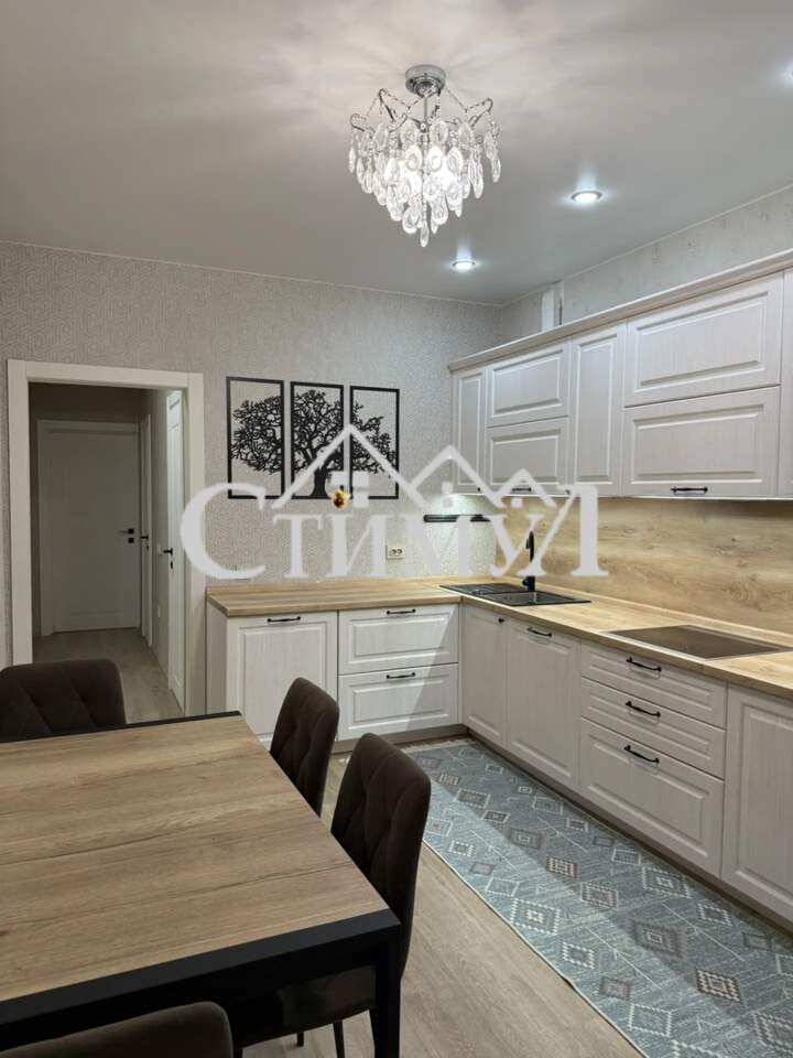 В квартире выполнен качественный и стильный ремонт, который создаст атмосферу уюта и комфорта. Локальные световые решения. Использовались качественные строительные материалы: сатиновые натяжные потолки, кварцвинил по площади всей квартиры, в санузлах керамогранит, дорогие обои и двери.