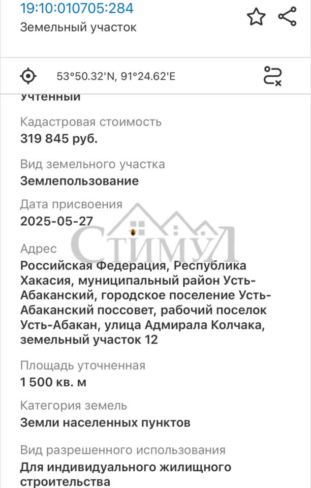 Площадь участка :