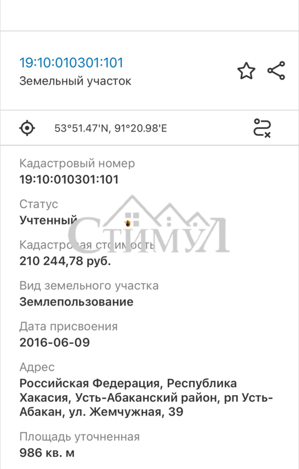 Площадь участка :